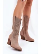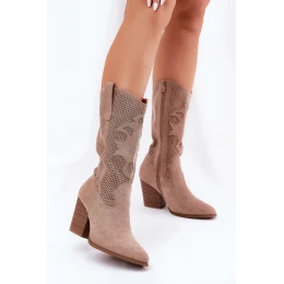 Ażurowe Kozaki Kowbojki Na Słupku S.Barski HY51-606 Beżowe