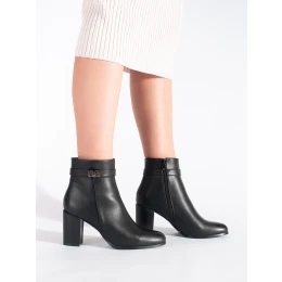 Designové dámské kotníčkové boty černé na širokém podpatku