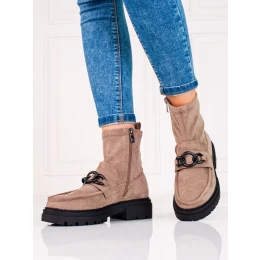 Designové dámské kotníčkové boty hnědé na plochém podpatku