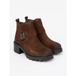 Designové kotníčkové boty dámské hnědé na širokém podpatku
