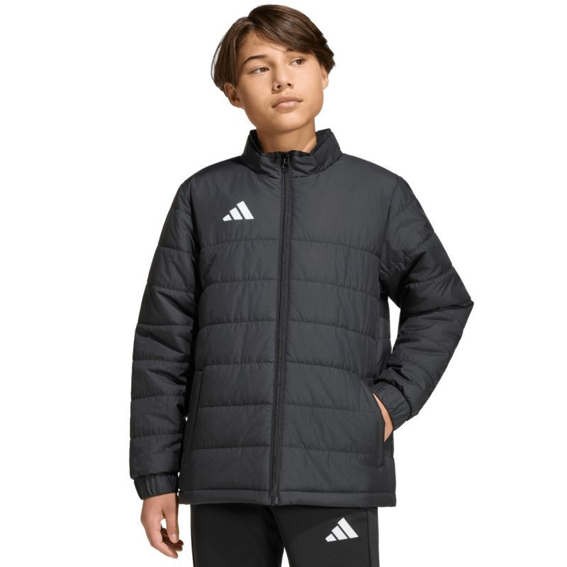 Detská bunda adidas Entrada 26 Light black JZ9124 Detská bunda adidas ti umožní ukázať svoj futbalový štýl za bránkovou čiarou. Prešívaná konštrukcia s rovnomerne rozloženou syntetickou výplňou. Štandardný strih. Zips po celej dĺžke. Bočné vrecká na zips. Elastické manžety. 100% recyklovaný polyester.