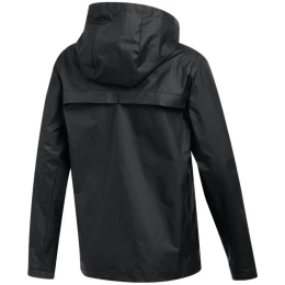 Kurtka dla dzieci Nike Academy 25 Rain Jacket czarna FZ9863 010 Kurtka przeciwdeszczowa dla dzieci Nike sprawdzi się podczas treningów gorszych warunkach pogodowych. Technologia Nike Storm-FIT wspomaga ochronę przed wiatrem i deszczem. Dopasowany krój. Zapinane kieszenie boczne. Zamek na całej długości. Kaptur. Materiał: 100% poliester