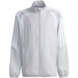 Dětská mikina adidas Tiro 26 League Presentation světle šedá JZ9053 Dětská mikina adidas pro děti, která se nosí při odpočinku mimo hřiště. model Tiro line. vyšívané logo. tři pruhy. lehká konstrukce. recyklovaná polyesterová vlákna. standardní střih. zip po celé délce. boční kapsy na zip. elastické manžety. materiál: 100% recyklovaný polyester.