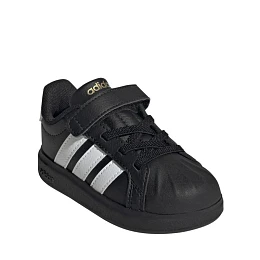 Dětská obuv adidas Streettalk EL I JS5054 pro každodenní nošení. Syntetický svršek. Špička ve tvaru mušle. Textilní podšívka pro větší pohodlí. Zapínání na suchý zip a pružné pásky připomínající klasické šněrování. Gumová podrážka.