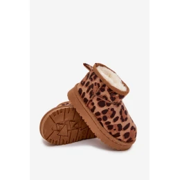 Hnedé detské a juniorské snehule Mireya s kožušinou a módnym panterovým vzorom v sebe spájajú pohodlie, teplo a štýl. Izolácia vo vnútri topánok udržiava nohy v teple počas chladných dní, zatiaľ čo pevná a odolná podrážka zaručuje stabilitu a bezpečnú chôdzu. Moderný dizajn poteší deti aj tínedžerov.