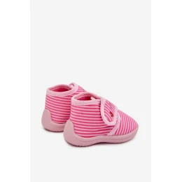 Detské papuče na suchý zips s prúžkami - ružové Lavelle