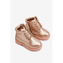 Dziecięce Trapery Botki Ocieplane Różowe Złoto Dexter