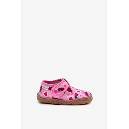 Dětské domácí pantofle Barefoot s červenými srdíčky na suchý zip Milami Růžové Talirae