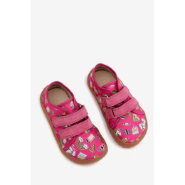 Pohodlné dětské pantofle vyrobené z kombinace textilního materiálu a přírodního semiše jsou ideální volbou pro každodenní použití doma i ve školce. Model ve stylu barefoot podporuje přirozenou práci nohy dítěte a pružná podrážka zajišťuje volnost pohybu a pohodlí při chůzi. Zapínání na dvojitý suchý zip usnadňuje rychlé obouvání a umožňuje dobré přizpůsobení pantoflí noze. Je to praktické a zdravé řešení pro nejmenší. Při výběru velikosti se řiďte tabulkou velikostí.