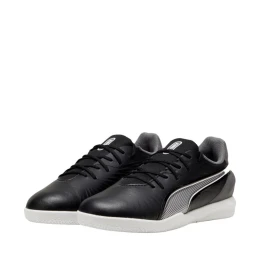 Buty piłkarskie dla dzieci Puma King Match IT 108051 01 Halówki dla dzieci Puma King zapewniają lepszą przyczepność i szybkość reakcji podczas treningów odbywających się na sztucznych nawierzchniach trawiastych. Sznurowana konstrukcja. Cholewka z przyjaznej środowisku skóry syntetycznej. Gumowa podeszwa zewnętrzna.