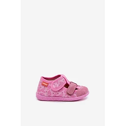 Dětské pantofle Milami lesklé na suchý zip srdíčka růžové Reathiana