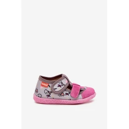 Kapcie Milami Dziecięce Na Rzepy W Jednorożce Szaro-Różowe Reathiana
