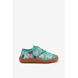 Dětské papuče na suchý zip Barefoot Květiny Listy Froddo G1700438-14 Mentolové