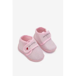 Detské papuče na suchý zips s prúžkami - svetloružové Lavelle