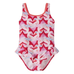 - Ozdobný volánik a potlače dodávajú plavkám štýl.