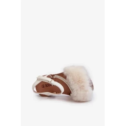 Detské sandále na suchý zips s kožušinou, biele Rosavere