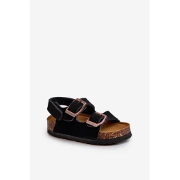 Sandałki Dziecięce Na Korkowej Platformie Zapinane Na Rzep Czarne Rorria