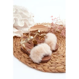 Dětské sandálky na suchý zip s kožíškem Zlaté model 21662983 - Boto