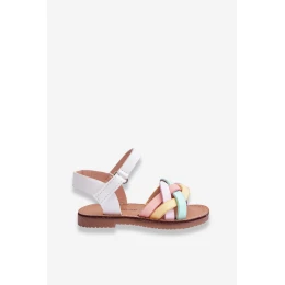 Nádherné, dětské sandály jsou vyrobeny z eko kůže. Vpředu mají propletené pruhy. Otevřená špička a pata umožní správné větrání obuvi. Zapínání na suchý zip u kotníku. Nasazené na plochém podpatku s protiskluzovou gumovou podrážkou. Při výběru velikosti se řiďte tabulkou velikostí.