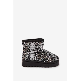 Dziecięce Śniegowce Botki Ocieplane Z Cekinami Czarno-Srebrne Rebbica