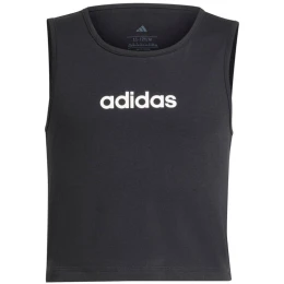 Dětské tričko adidas Essentials černé JC9732 adidas letní tričko pro mládež. Krátký střih a model bez rukávů, ideální jako doplněk letní stylizace. Měkký bavlněný úplet. Černá barva a malé logo na hrudi v kontrastní barvě. Materiál: 100% bavlna.