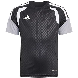 Koszulka dla dzieci adidas Tiro 26 Competition Training czarno-szara KA7599 Koszulka dla dzieci adidas sprawdzi się podczas treningów i decydujących rozgrywek. Regularny krój. Wstawki z siateczki na klatce piersiowej. Technologia Climacool pochłania i odprowadza pot. Włókna powstały w procesie recyklingu. Subtelne logo. Paski na rękawach. Materiał: 100% poliester z recyklingu