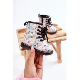 Krásné, dívčí kozačky jsou vyrobeny z eko kůže s módním vzorem. Navíc jsou zdobené třpytkami. Kozačky mají zip na boku svršku a klasické šněrování. Kozačky na plochém podpatku a platformě s protiskluzovou podrážkou. Navíc je šitý nití. Uvnitř byly zateplené dekou na boty. Skvělý model pro vaše nejmenší! Při výběru velikosti použijte tabulku velikostí.