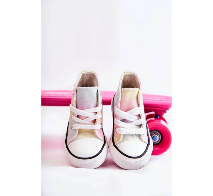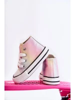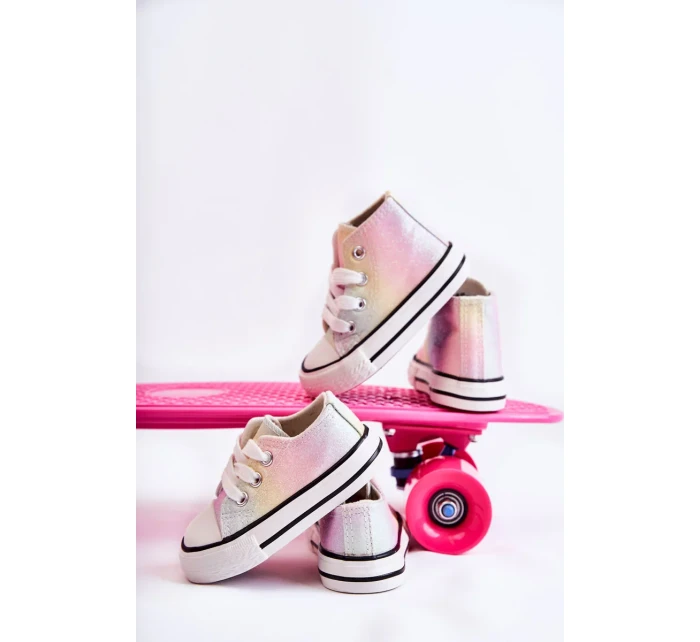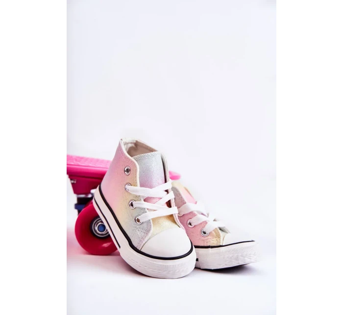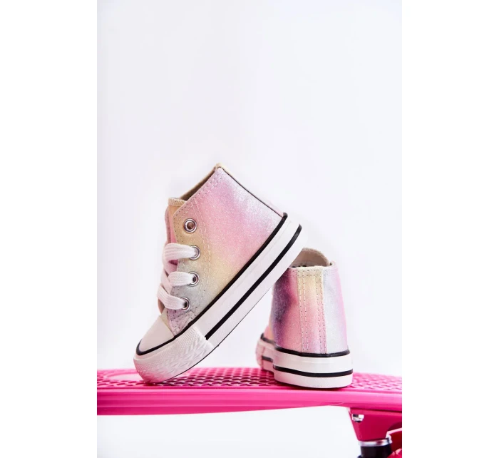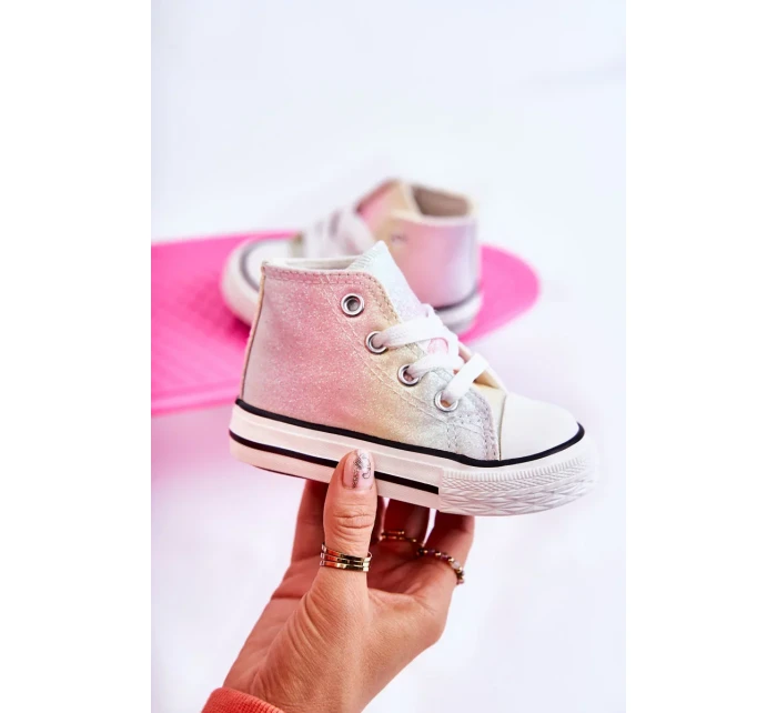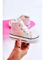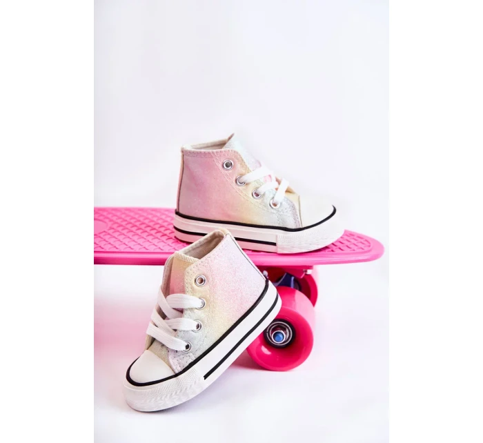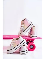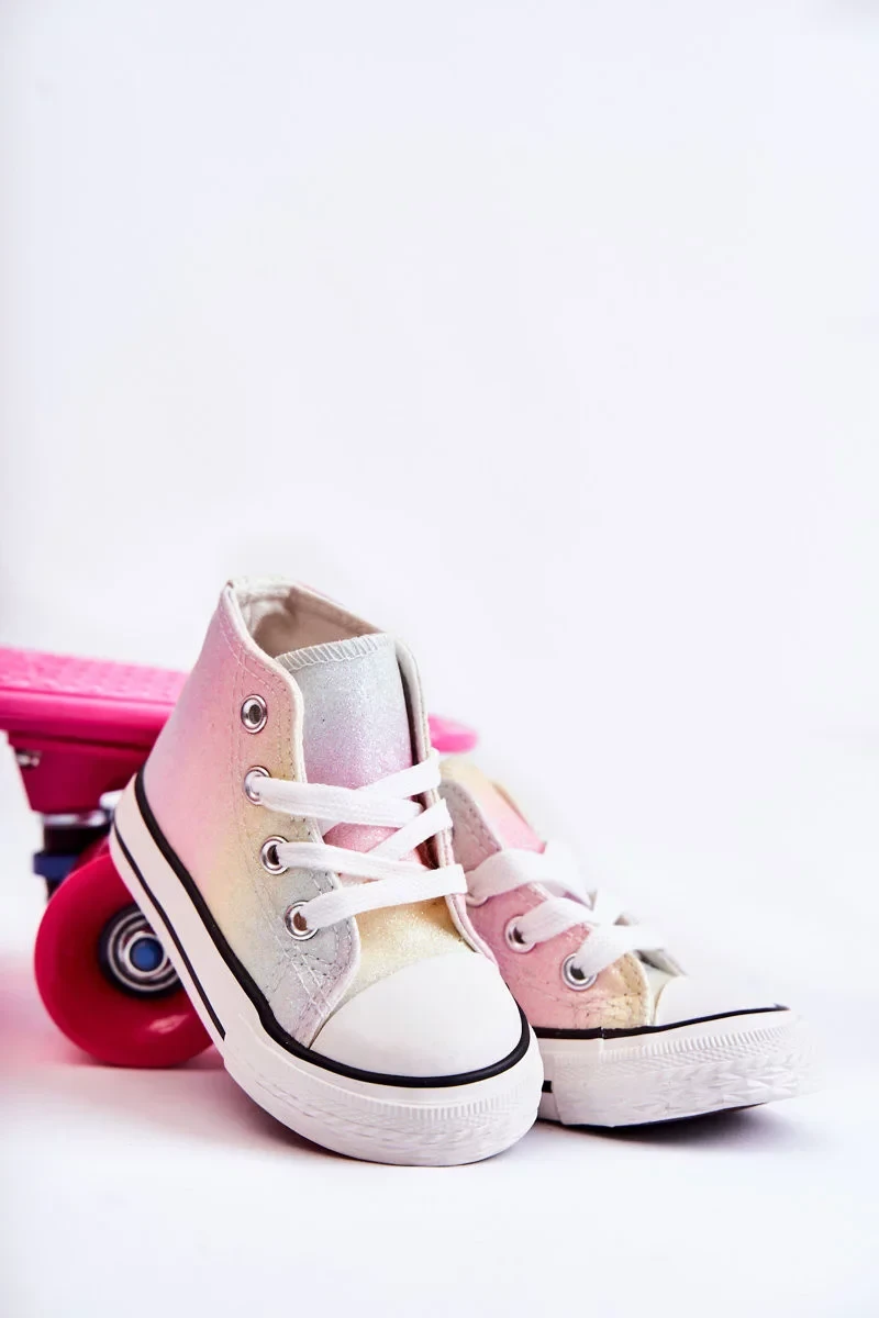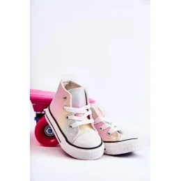 vysoké detské tenisky z textilného materiálu. zdobené trblietkami. klasický výplet. gumová spevnená špička. mäkká a textilná stielka. gumová a protišmyková podrážka. ľahké a pohodlné tenisky. ideálne na jarnú a letnú sezónu. pri výbere veľkosti použite tabuľku veľkostí .