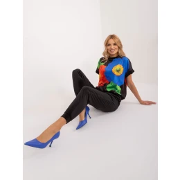 Rozmery súpravy v jednej veľkosti meranej na plocho: šírka blúzky v podpazuší - 64 cm, dĺžka blúzky - 65 cm, šírka nohavíc v páse - 36 cm, výška nohavíc v páse - 32 cm, dĺžka nohavíc - 94 cm.