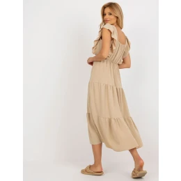 Tmavobéžové midi šaty s volánom.