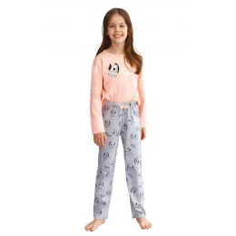 Dievčenské pyžamo 2615 Sarah pink Taro - vyrobené z kvalitnej a mäkkej bavlny - ružové tričko s dlhým rukávom a roztomilou potlačou - dlhé vzorované nohavice Zloženie materiálu: 100% bavlna