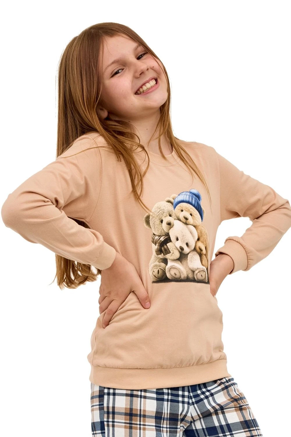 Dievčenské pyžamo 592/187 Bears CORNETTE - vyrobené z kvalitnej bavlny - béžové tričko s dlhými rukávmi - okrúhly výstrih - potlač vpredu - dlhé kárované nohavice so šnúrkou na stiahnutieZloženie materiálu: 100% bavlna