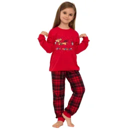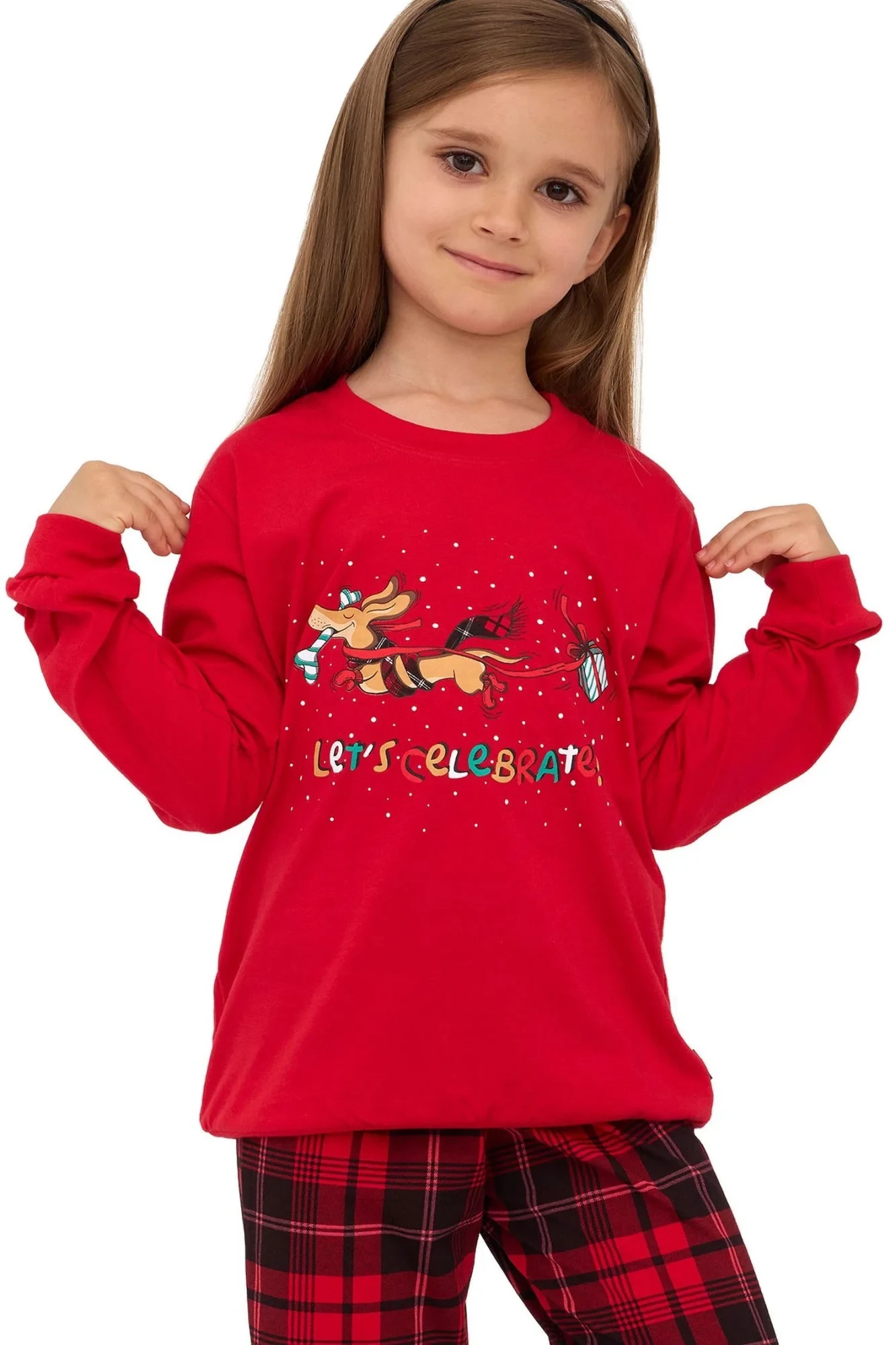 Dievčenské pyžamo 594/174 Celebrate CORNETTE - vyrobené z kvalitnej bavlny - červené tričko s dlhým rukávom - zdobené potlačou na prednej strane - dlhé kárované nohavice - vianočná kolekciaZloženie materiálu: 100% bavlna