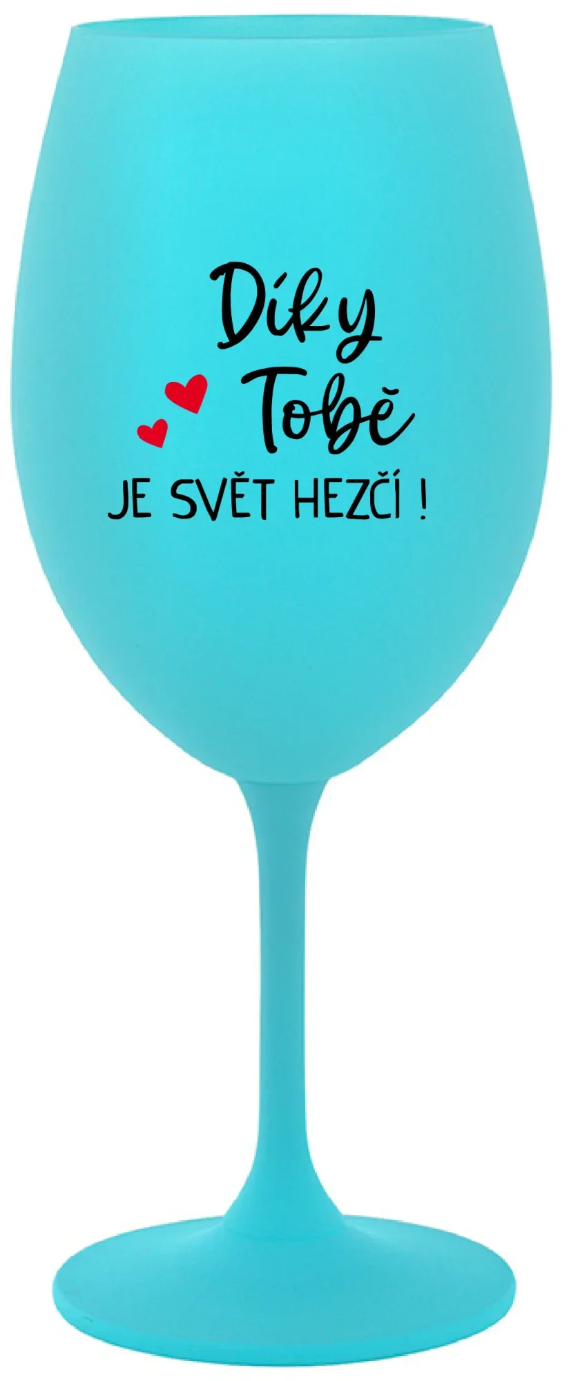 DÍKY TOBĚ JE SVĚT HEZČÍ! - tyrkysová sklenice na víno 350 ml