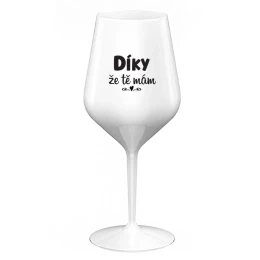 DÍKY ŽE TĚ MÁM - bílá nerozbitná sklenice na víno 470 ml