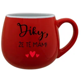 DÍKY, ŽE TĚ MÁM! - červený keramický hrníček 300 ml