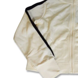 Produkt w kolorystyce kremowej z czarnymi zdobieniami oraz logiem Nike.