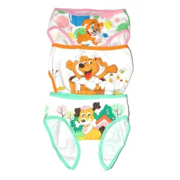 Bavlněné dívčí kalhotky zdobené barevnými vzory, balené po 3 kusech.