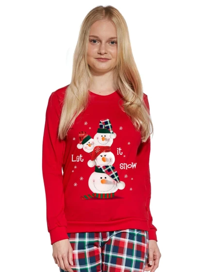 Dívčí pyžamo 592/172 Snowman 2 CORNETTE - vyrobené z vysoce kvalitní a měkké bavlny - tričko je červené barvy s dlouhými rukávy - zdobené barevným potiskem - dlouhé kárované kalhotyMateriálové složení: 100% bavlna