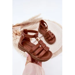 Dívčí sandály se zlatým detailem hnědé model 21701179 - Boto