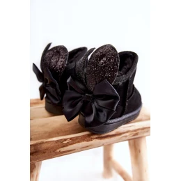 Dziewczęce Ocieplane Śniegowce Z Kokardkami Czarne Meriva