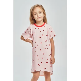 Model posiada krótki rękaw, który doskonale sprawdzi się w cieplejsze dni. Koszula została ozdobiona delikatnym wzorem nadającym jej bajkowego, dziewczęcego charakteru. Długość przed kolano gwarantuje swobodę ruchów i wygodę noszenia.