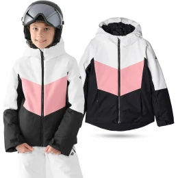Dievčenská lyžiarska bunda s kapucňou.
