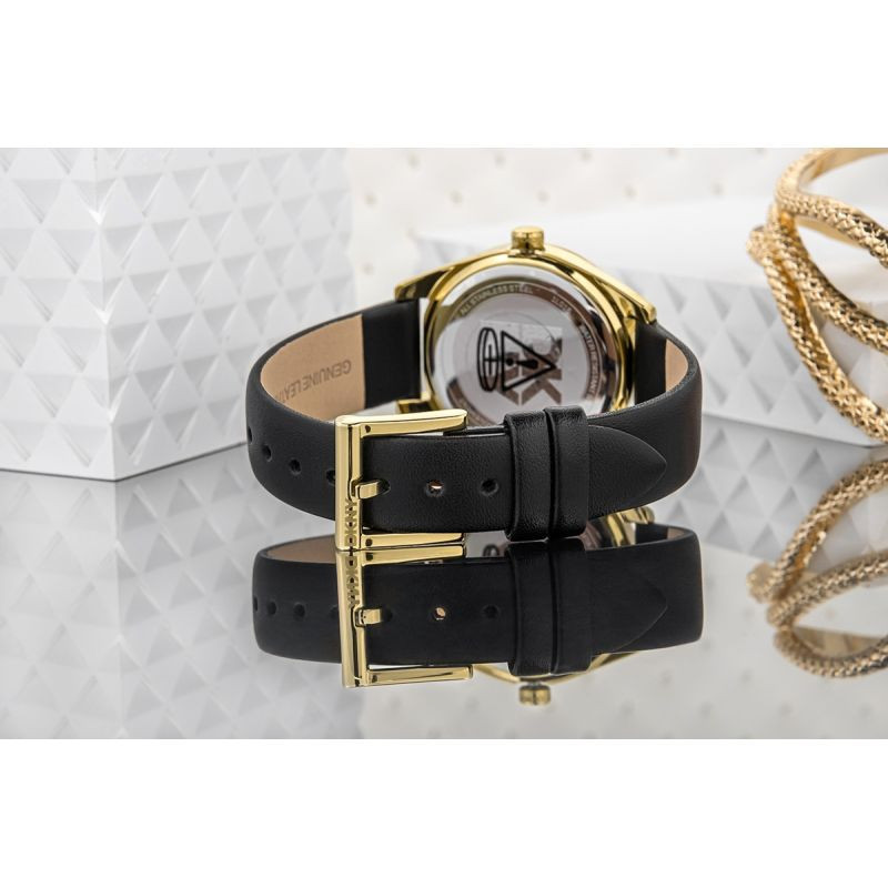 Hodinky DKNY sú odvážnym prejavom luxusu, ktorý upúta pozornosť a zdôrazňuje jedinečný štýl svojho majiteľa. Zlatý obal upúta pozornosť svojím sofistikovaným leskom, zatiaľ čo trojrozmerné logo DKNY na ciferníku dodáva hodinkám modernú hĺbku a jedinečný výraz. Hlboké čierne pozadie kontrastuje so zlatými detailmi a vytvára jedinečný svetelný efekt, ktorý zdôrazňuje prestížny charakter hodiniek.