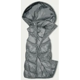 Dlhá šedá páperová vesta s kapucňou (5M3183-105)