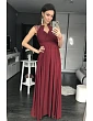 Elegantné dlhé maxi šaty, ktoré sa dajú viazať na mnoho spôsobov. Sú vyrobené z bordovej elastickej látky s brokátom. Vyrobené v Poľsku. Značka Numoco.