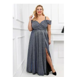 Elegantné dlhé šaty s výstrihom v tvare presýpacích hodín, tenkými ramienkami a rukávmi. Šaty so zapínaním v páse na skrytý zips, spodná časť kvetovaná s rozparkom. Šaty z lesklého materiálu.
