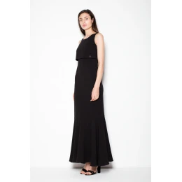 Jednoduché dlhé šaty až na zem s efektným rozšíreným spodným dielom, s prekrytím prišitým k hornému dielu šiat. Šaty majú ramienka.