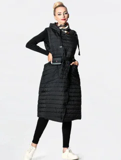Dámska dlhá čierna prešívaná vesta (JIN219)