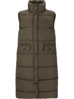 Dlhá béžová páperová vesta s kapucňou (5M3183-84)